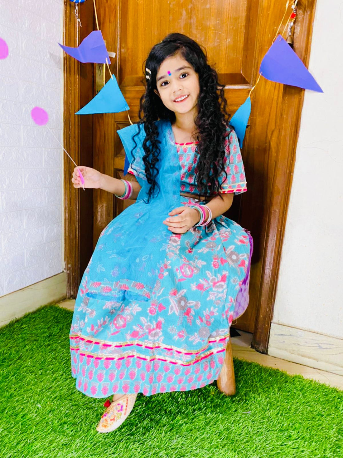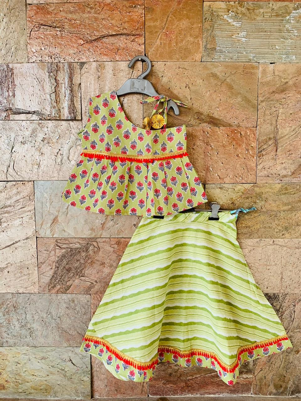 Crop top with lehenga paired . set includes dupatta made of pure cotton. Softer cotton...