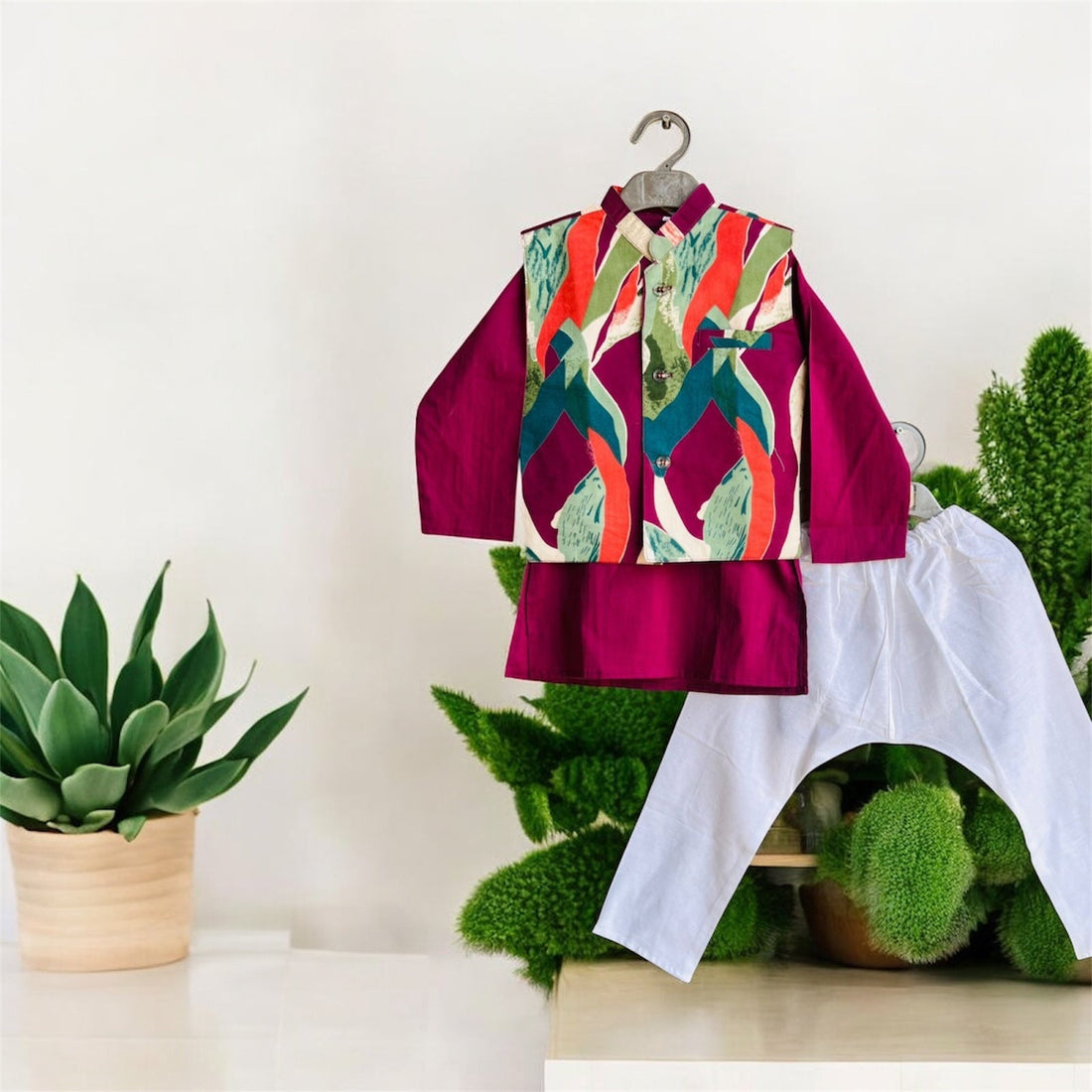 Shubh red kurta pajama jacket set (Kapasii Premium)