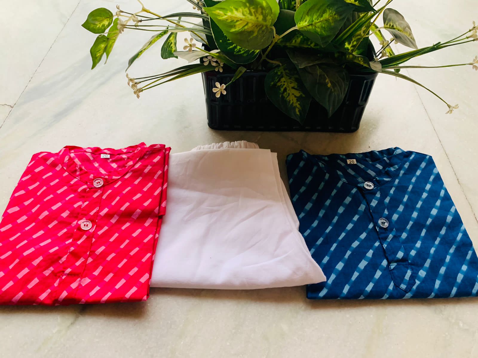 - Solid colur printed kurta with mul pajama