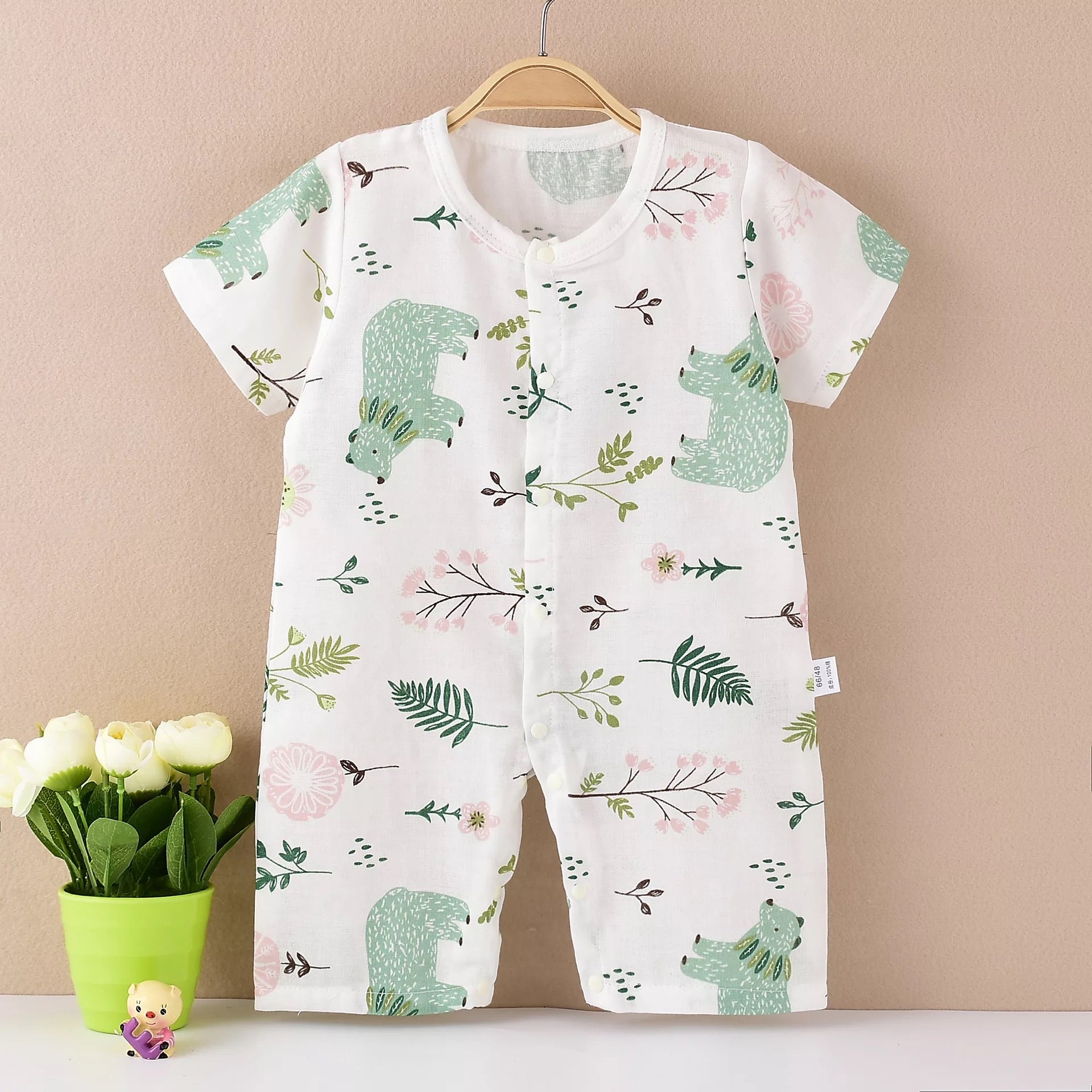 The Romper is made from muslin cotton fabric with no harmful chemicals used in processing, dyeing, or printing stages. The cotton treats your baby's skin with ultimate softness, due to which your baby can be play around comfortably.