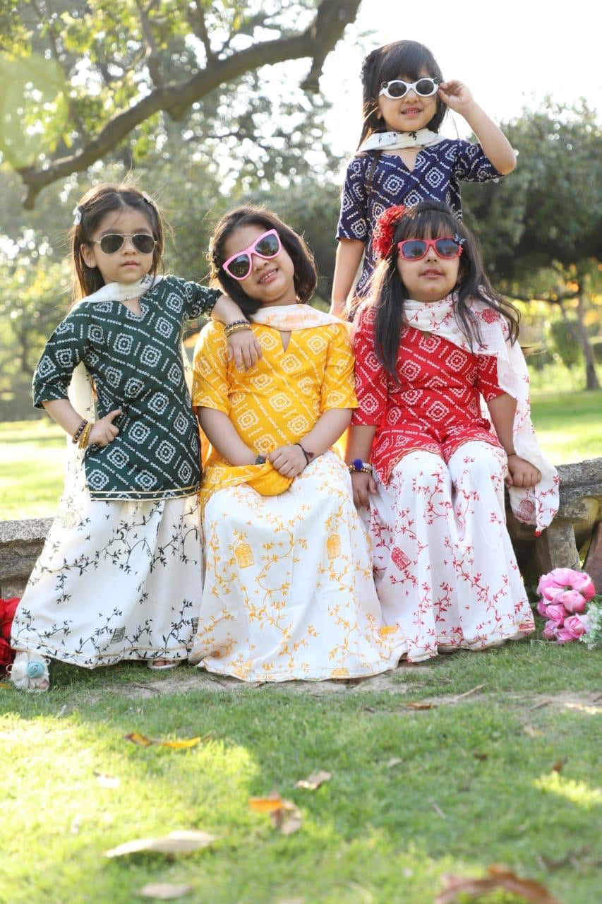 Set included : printed kurta , lehenga with beautiful delicate leaves and flowers prints , duppata matching the lehenga print .