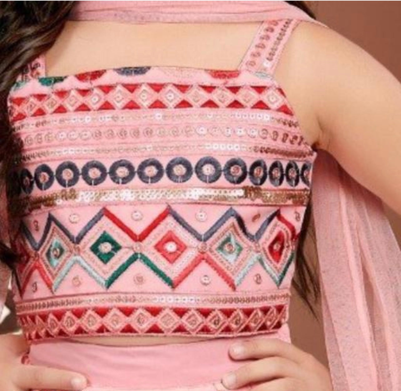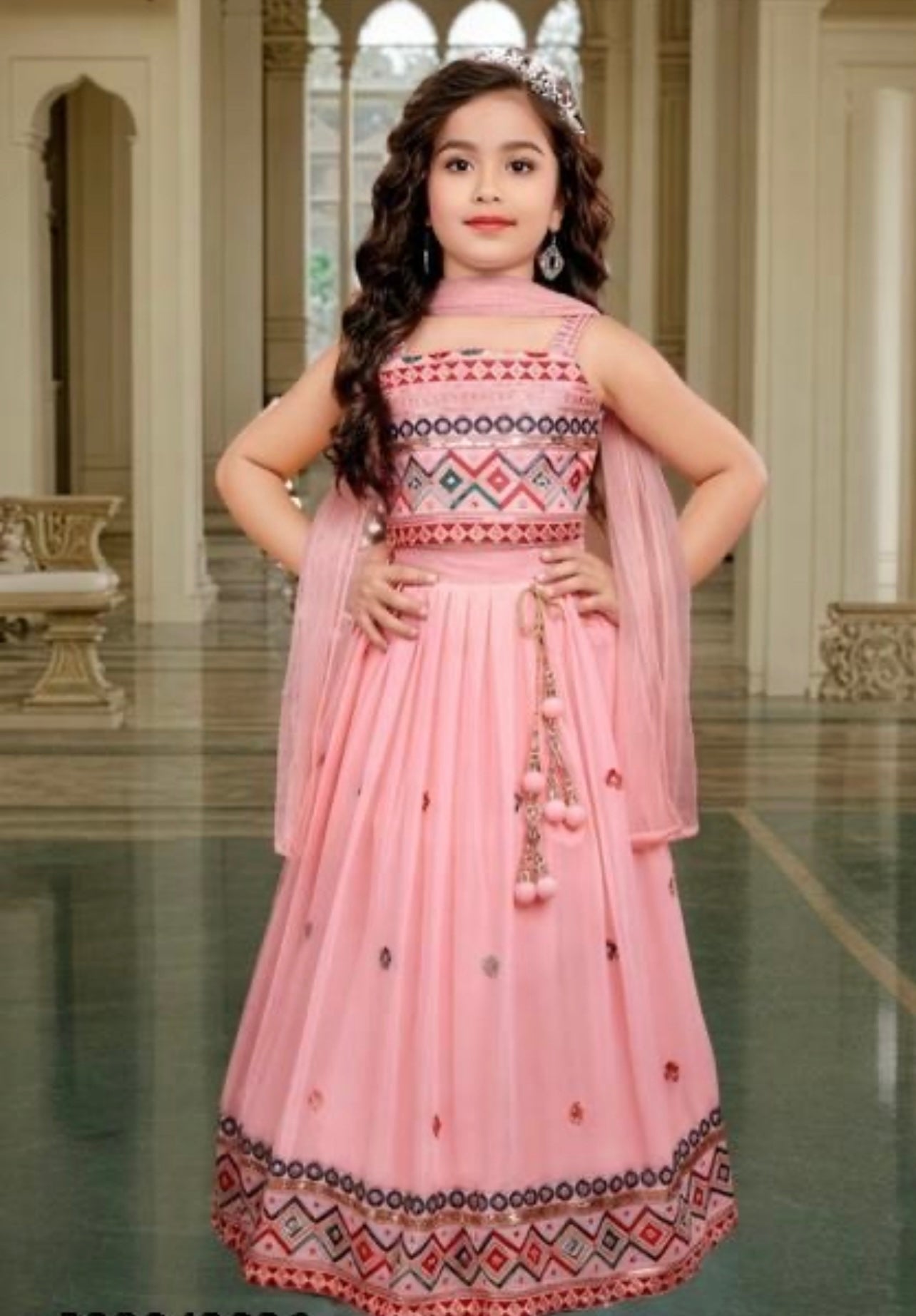 Girls baby pink lehenga set with sleeveless chili and dupatta