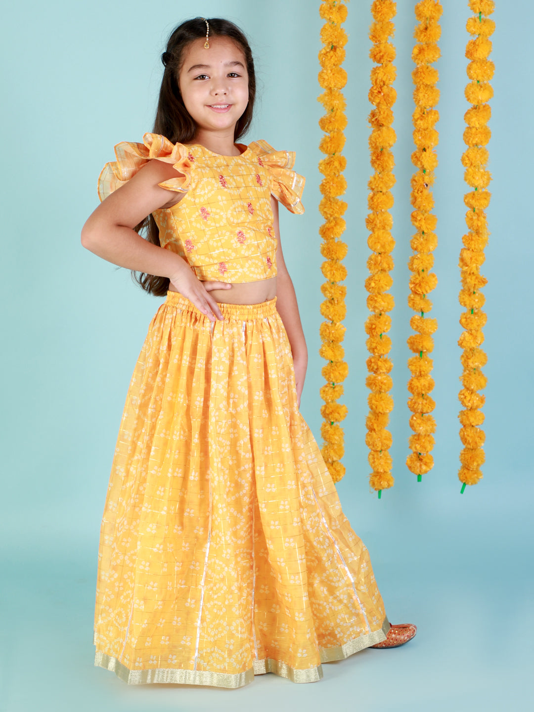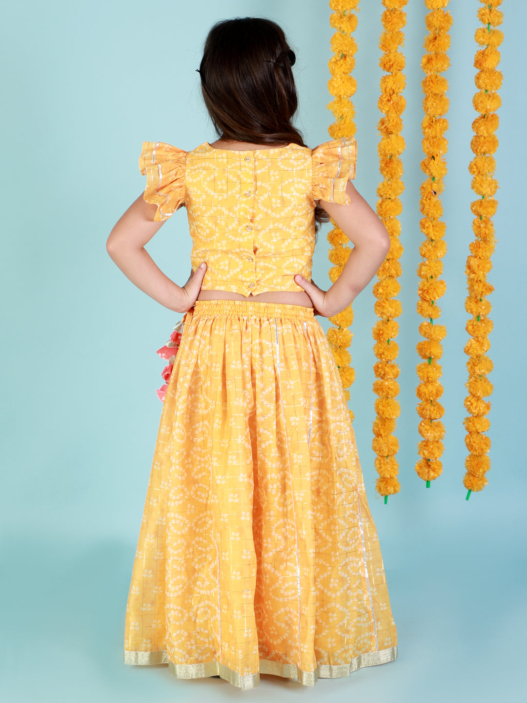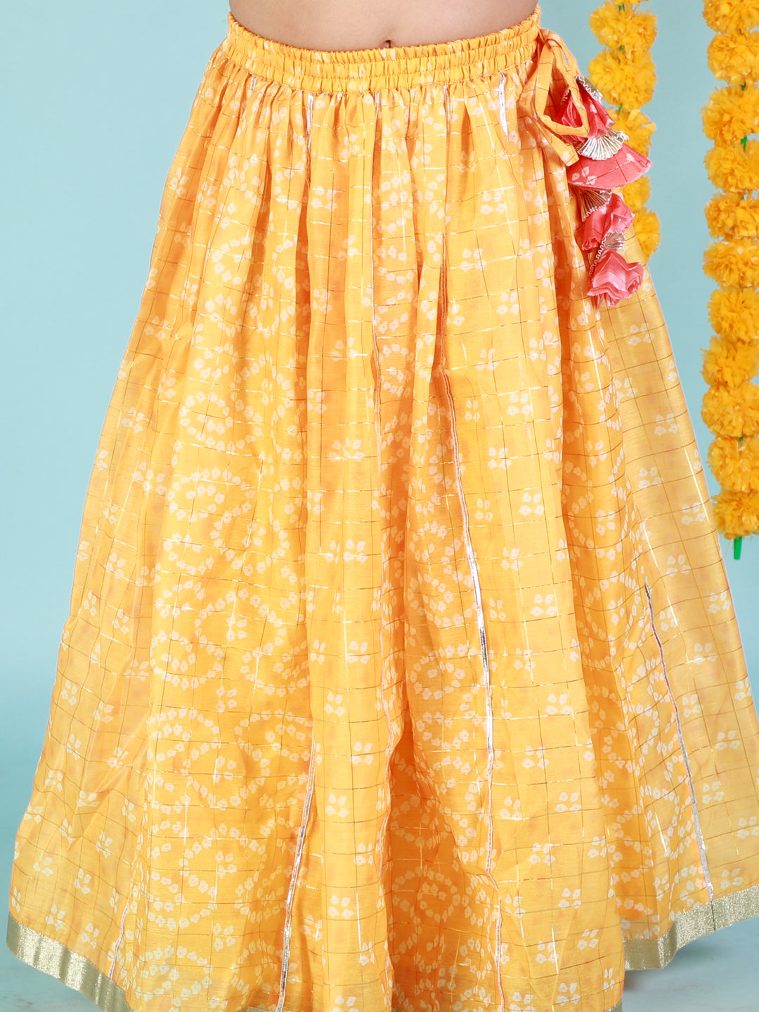 Mehfil yellow bandhni lehenga choli set with puffed sleeves