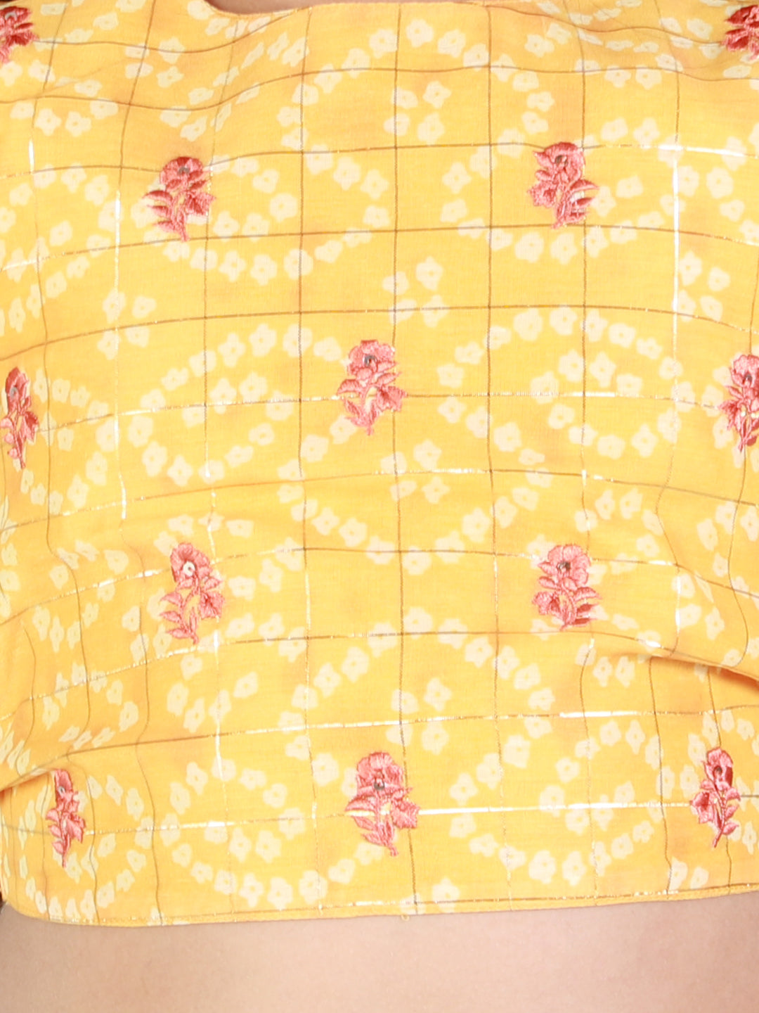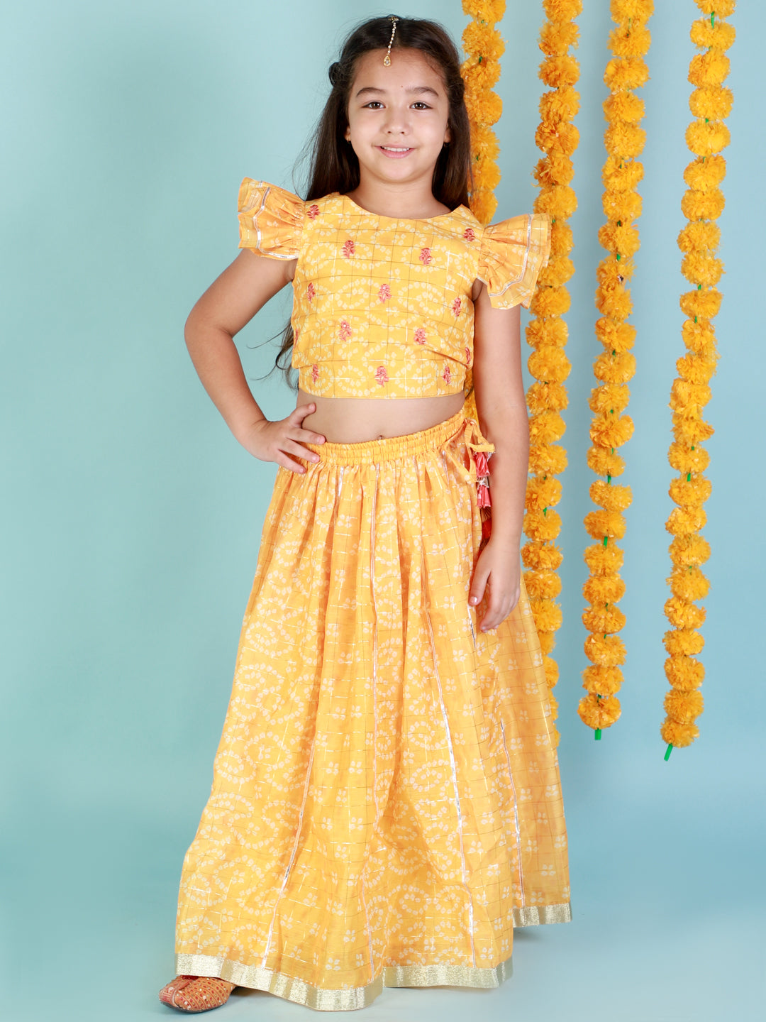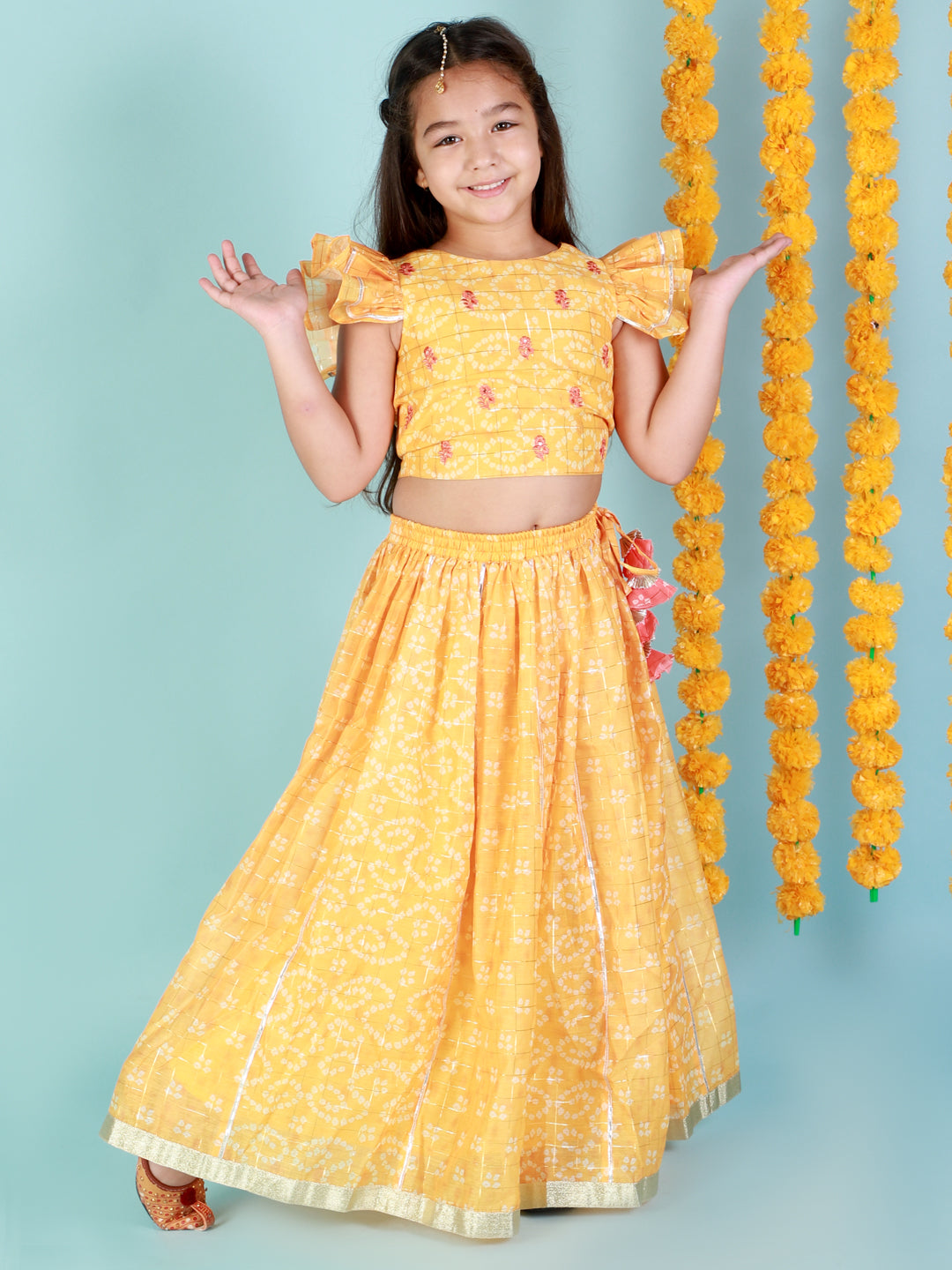 Mehfil yellow bandhni lehenga choli set with puffed sleeves