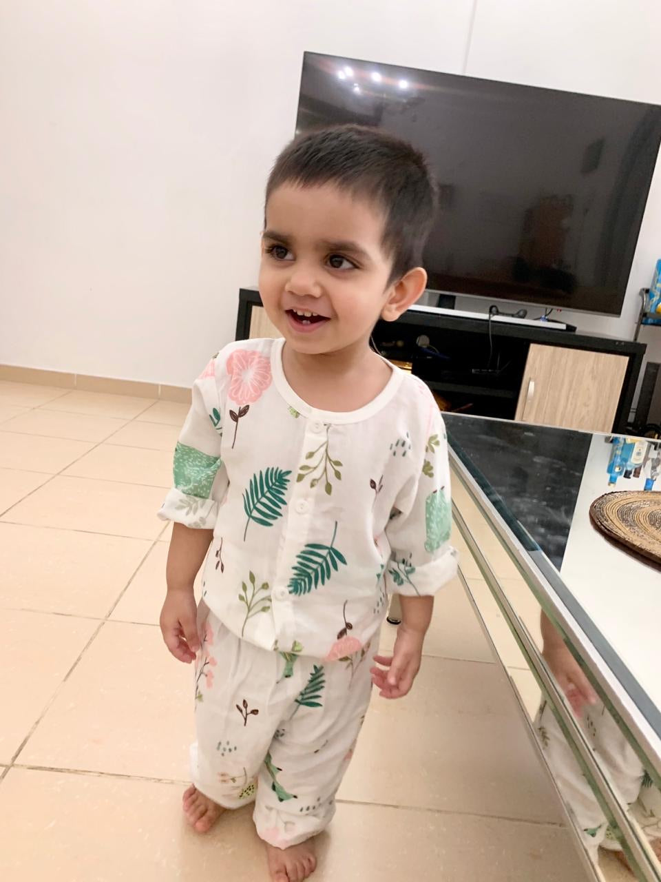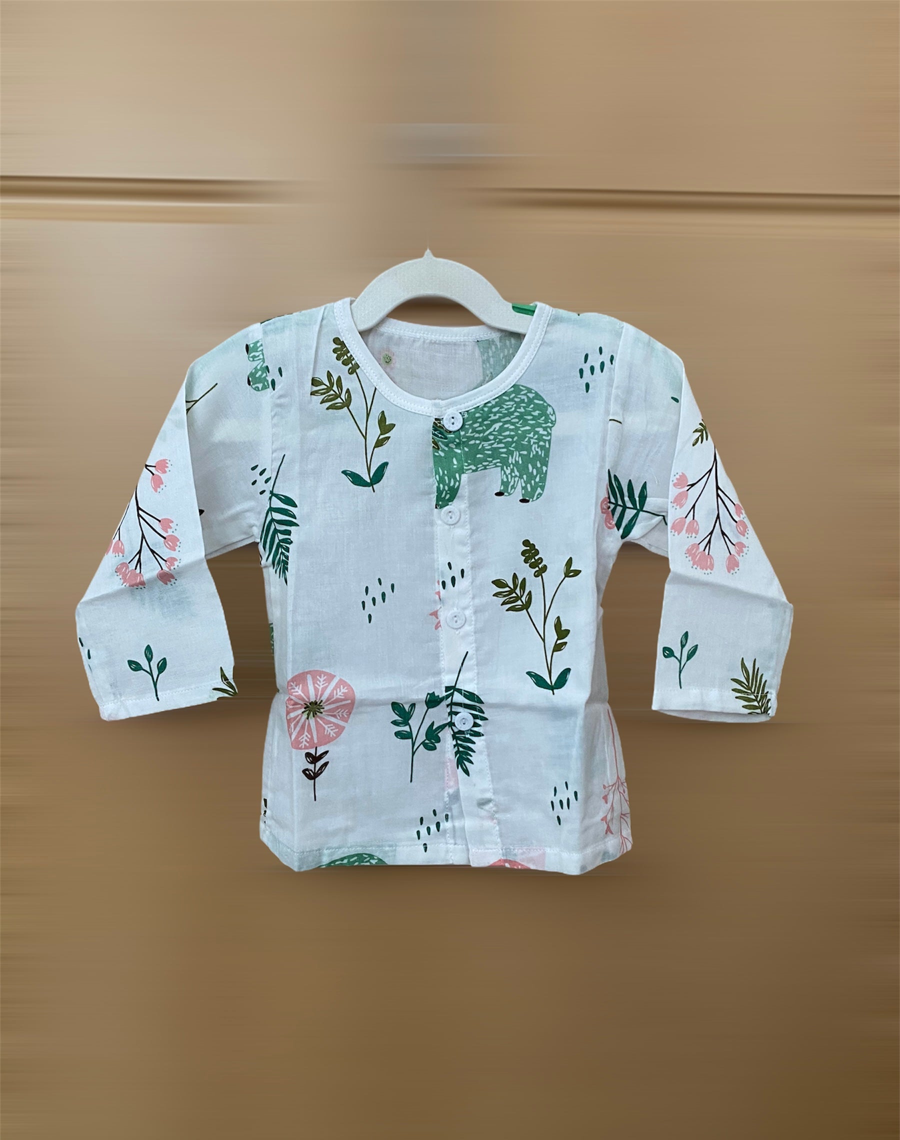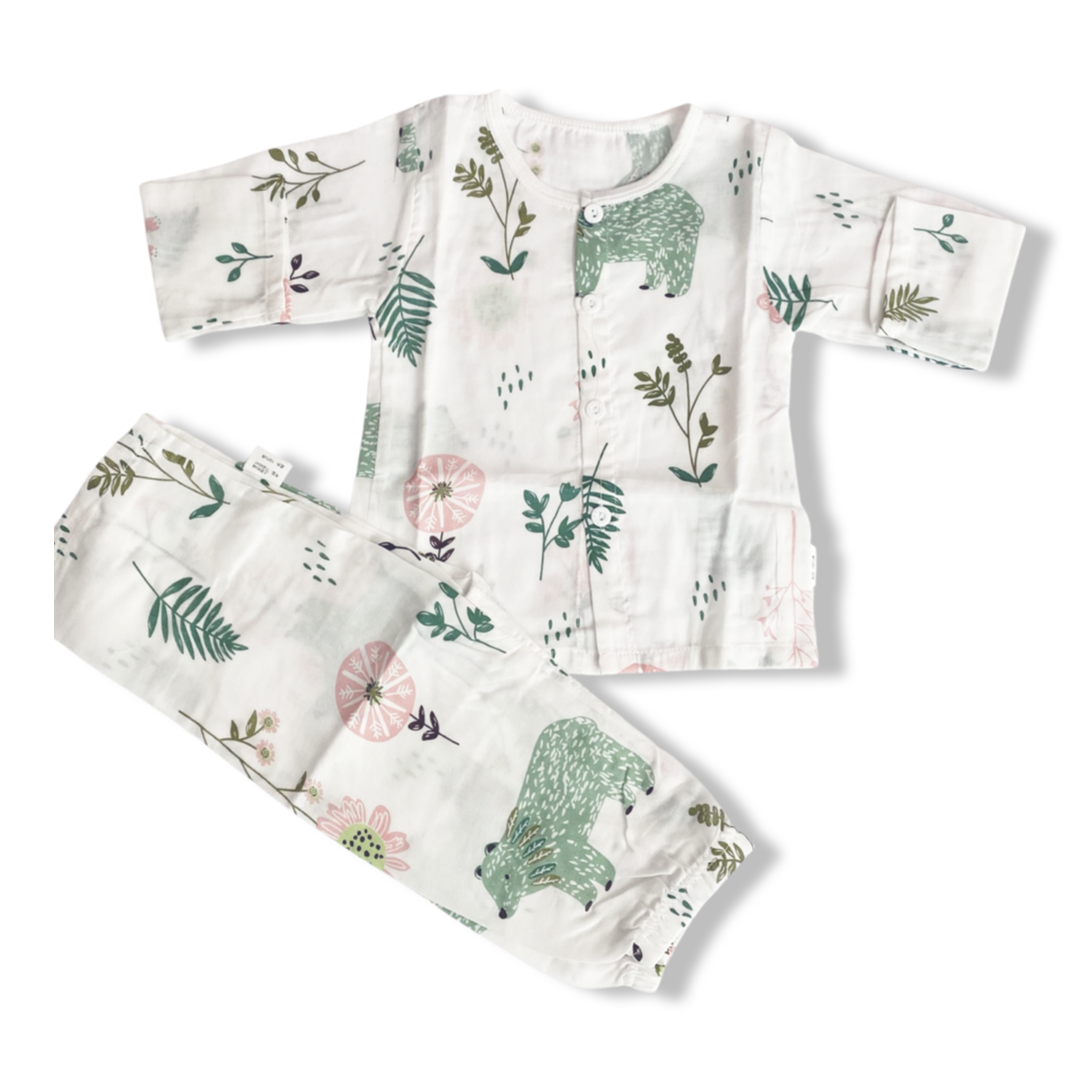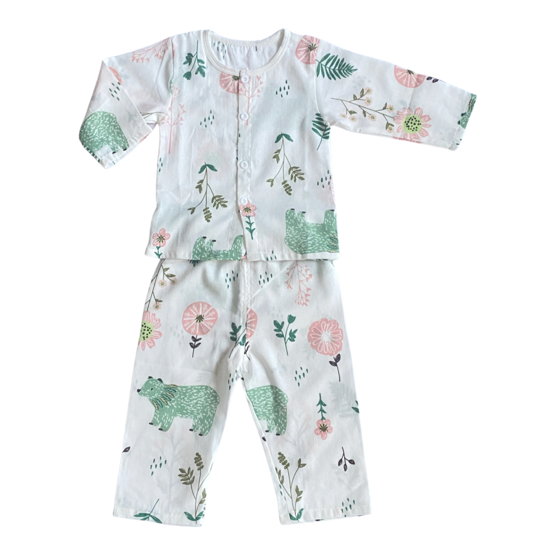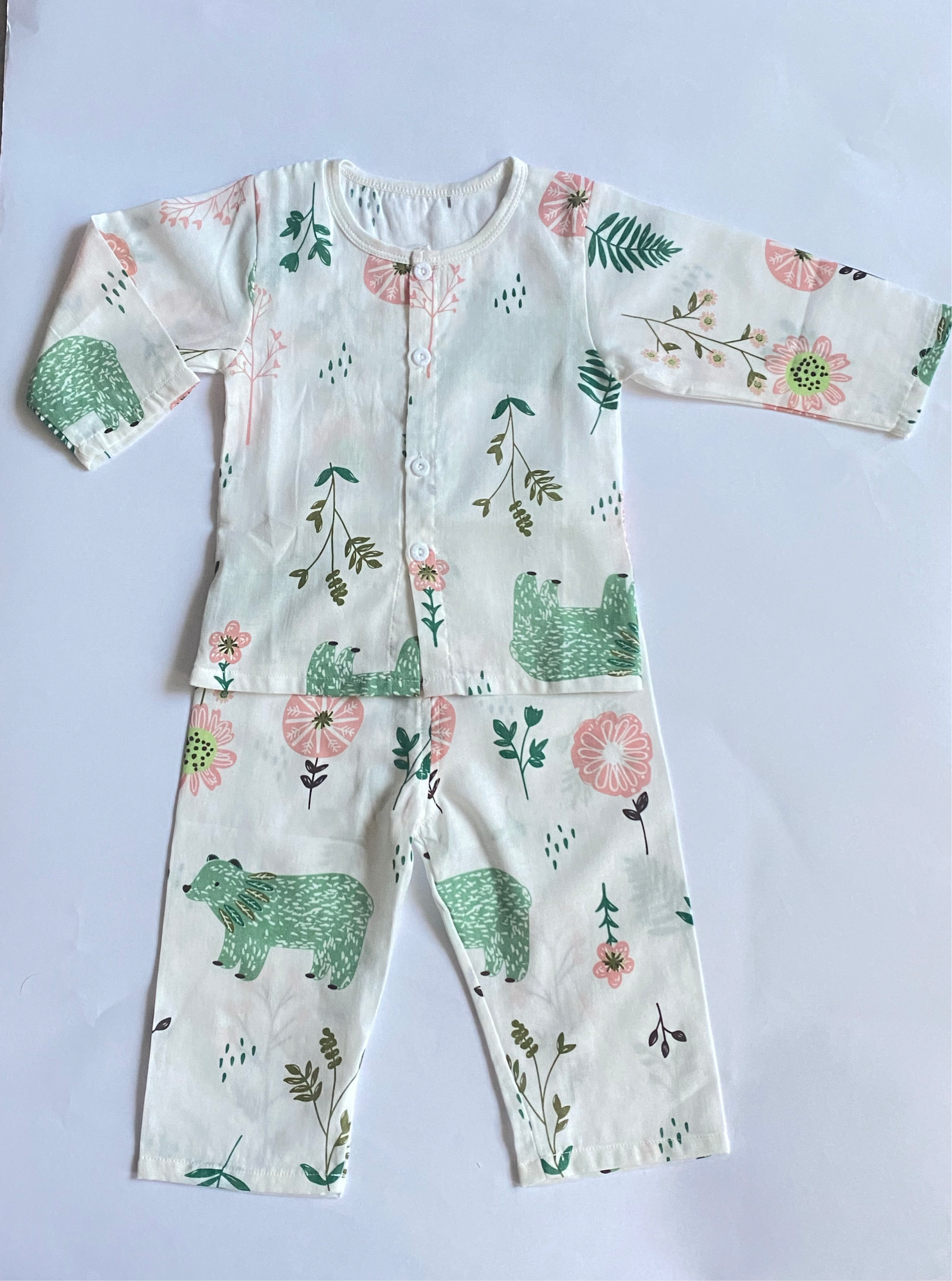 Pooh the bear muslin night suit has got the perfect playful print of the gentle dinos to blossom up your little baby's fun day.
