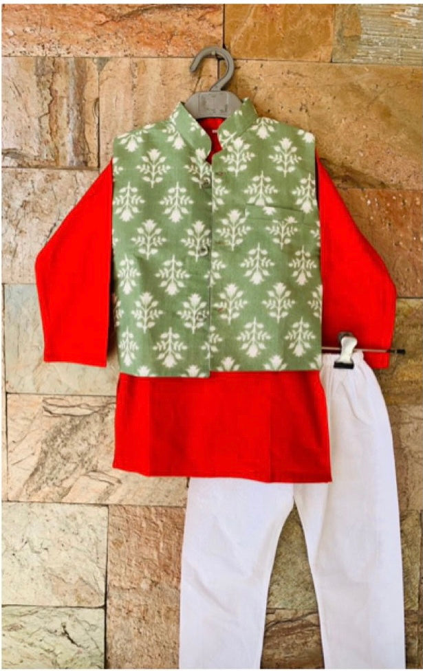 100 percent high grade cotton yellow kurta and white pajama paired with linen deep pink striped jacket