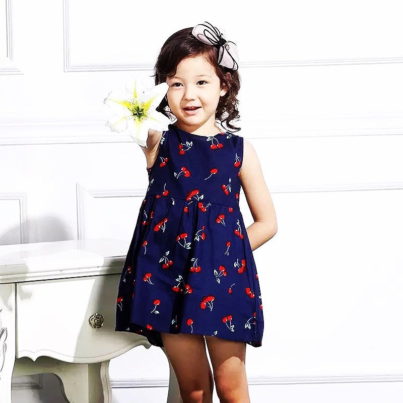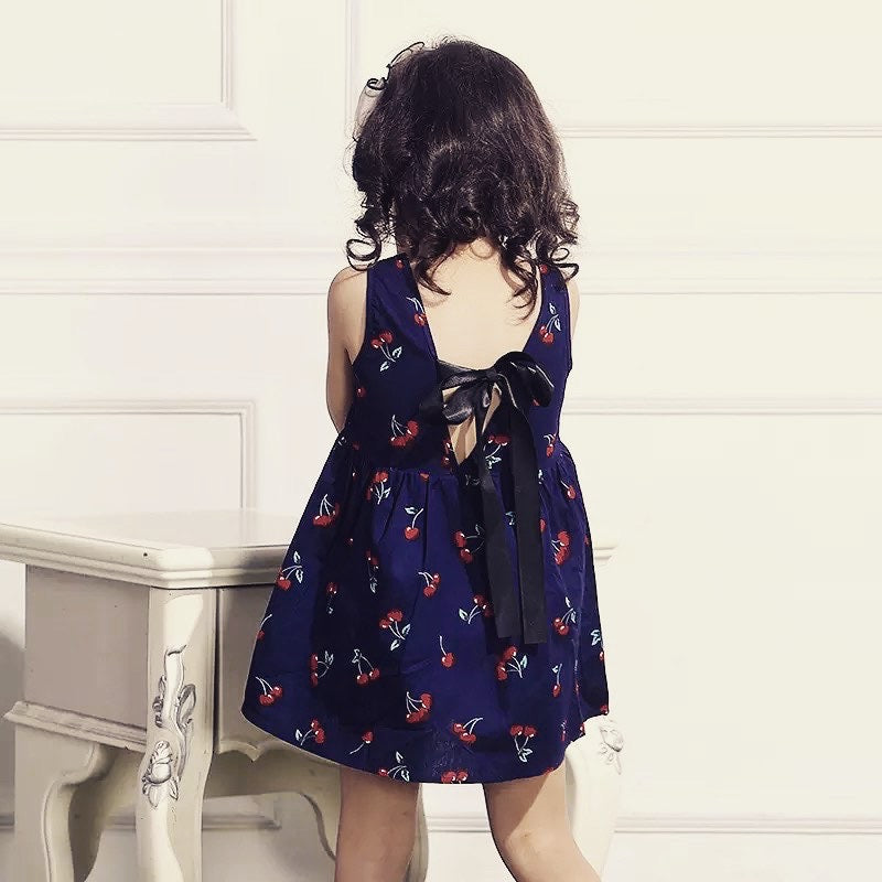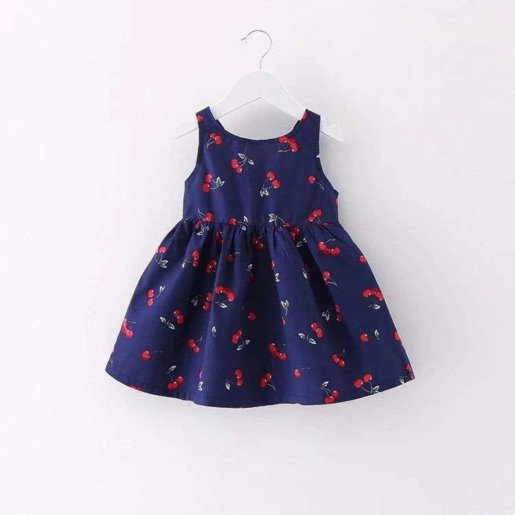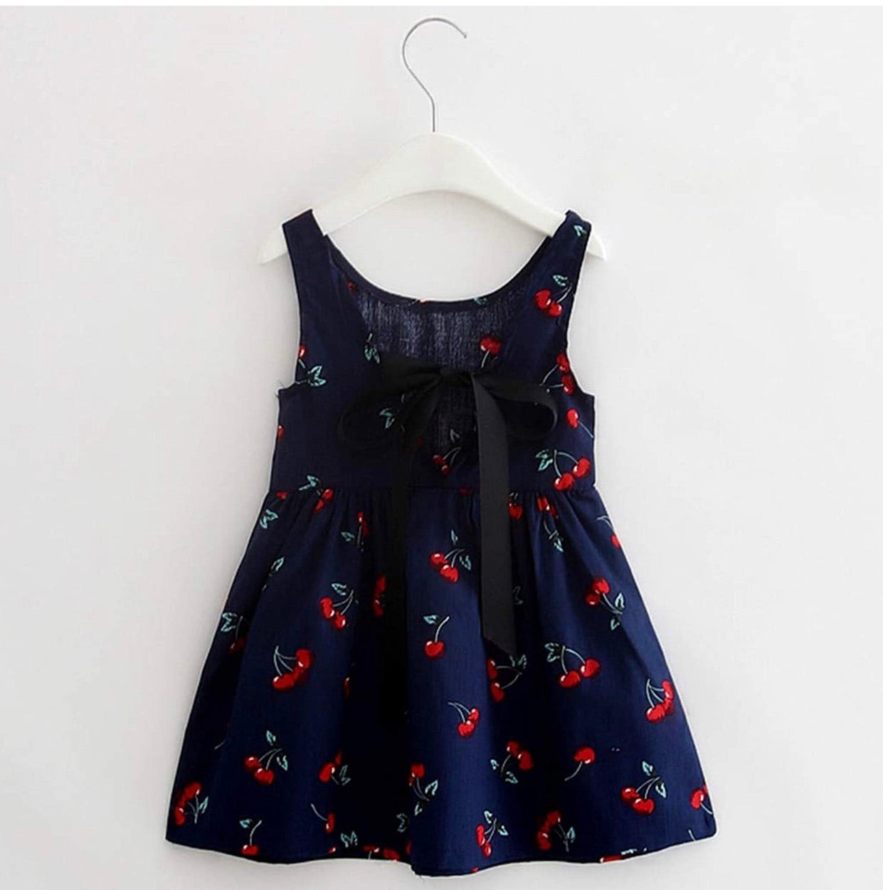 The watercolor pop red cherry with a dash of green leaf print makes the dress delightful.