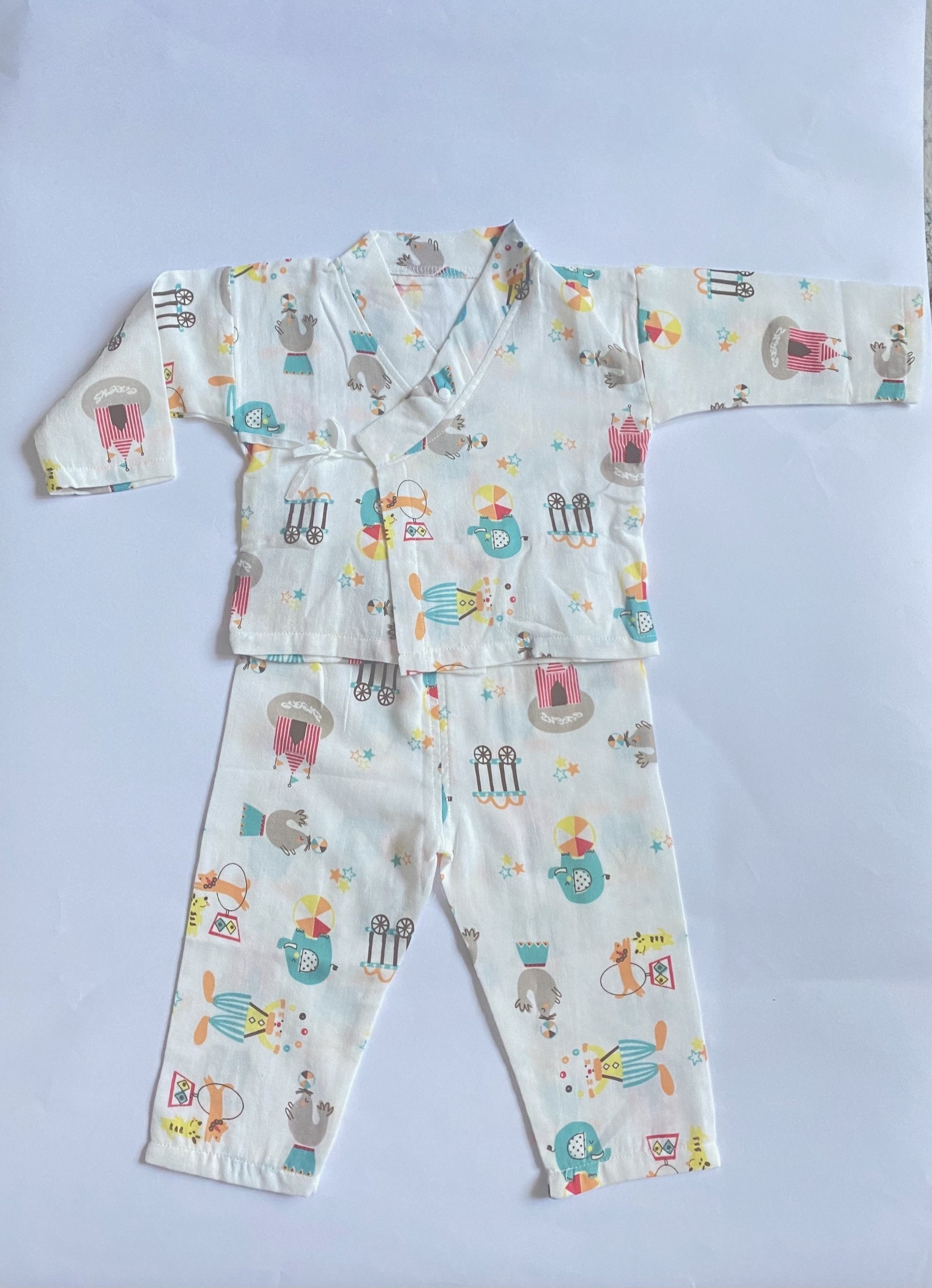 - 100% organic muslin cotton 2 piece set, tied up shirt with a knot on inside and outside, and a matching perfect fit pajama.