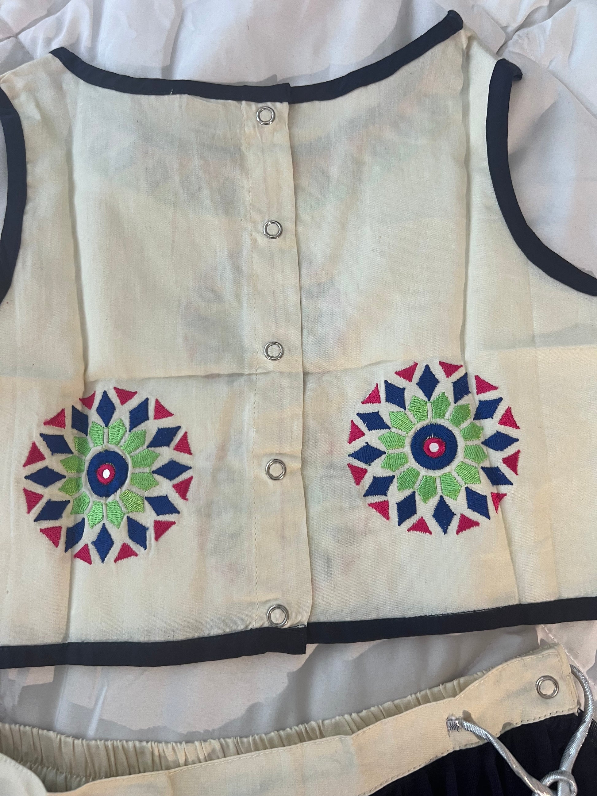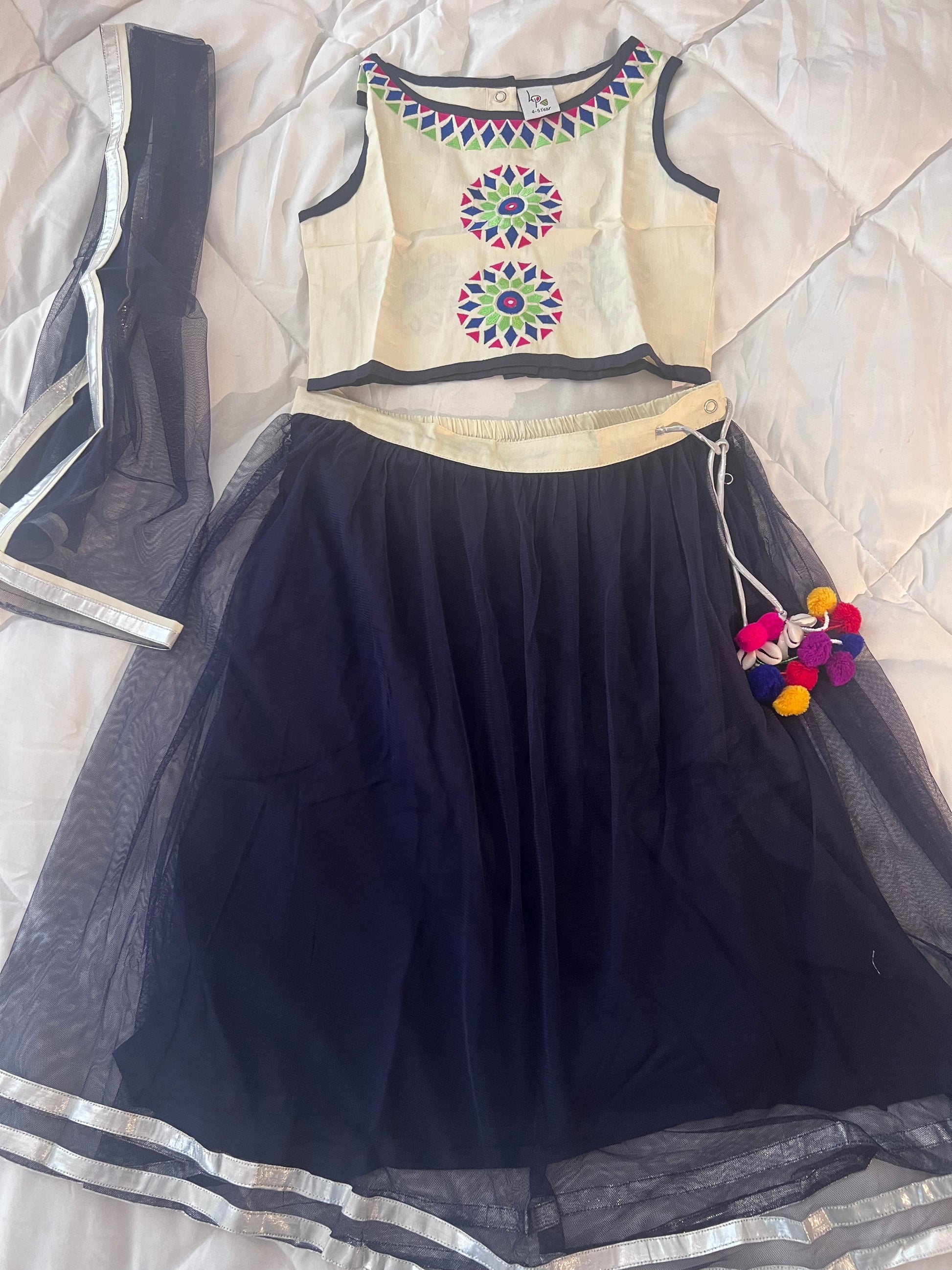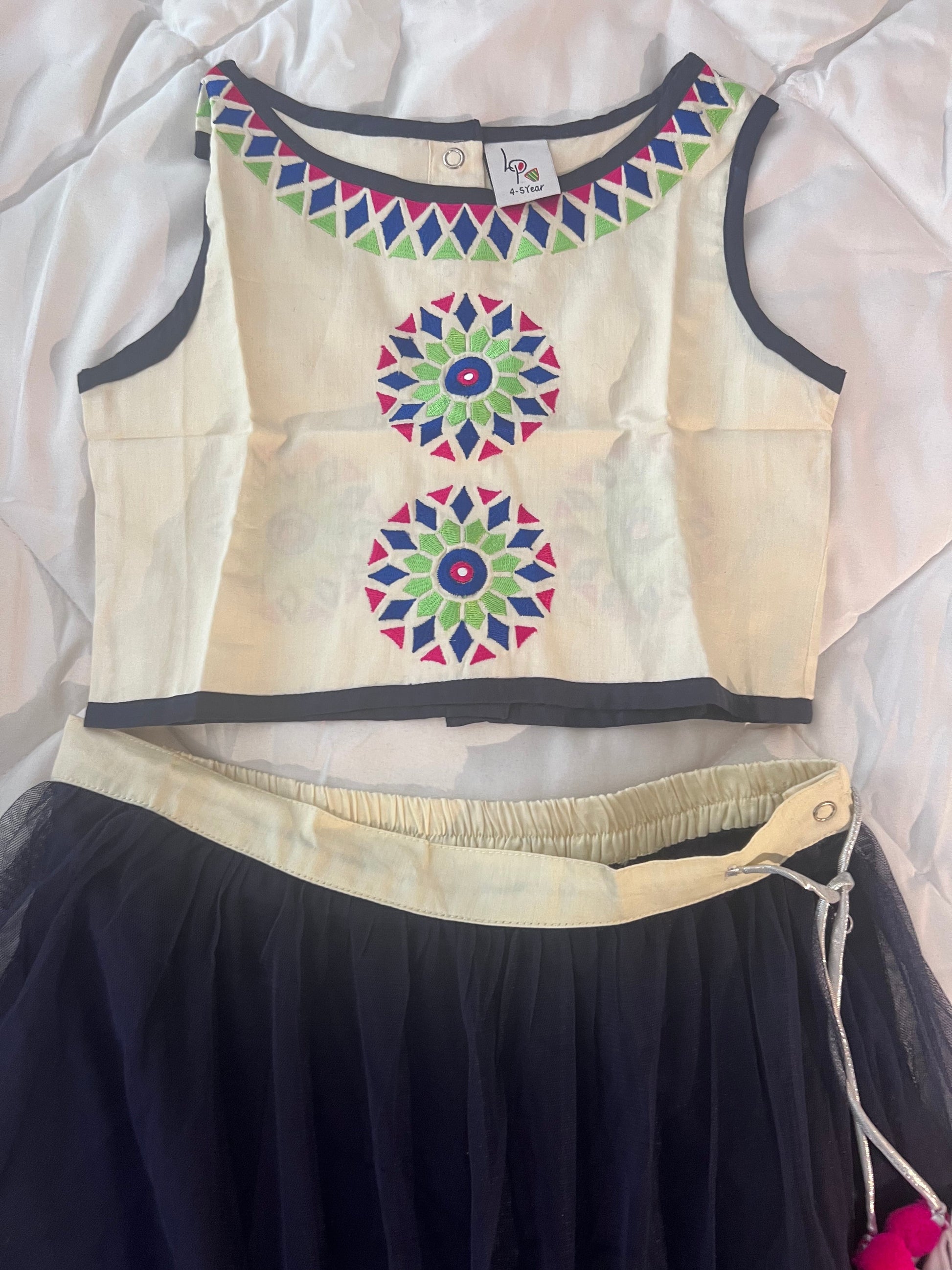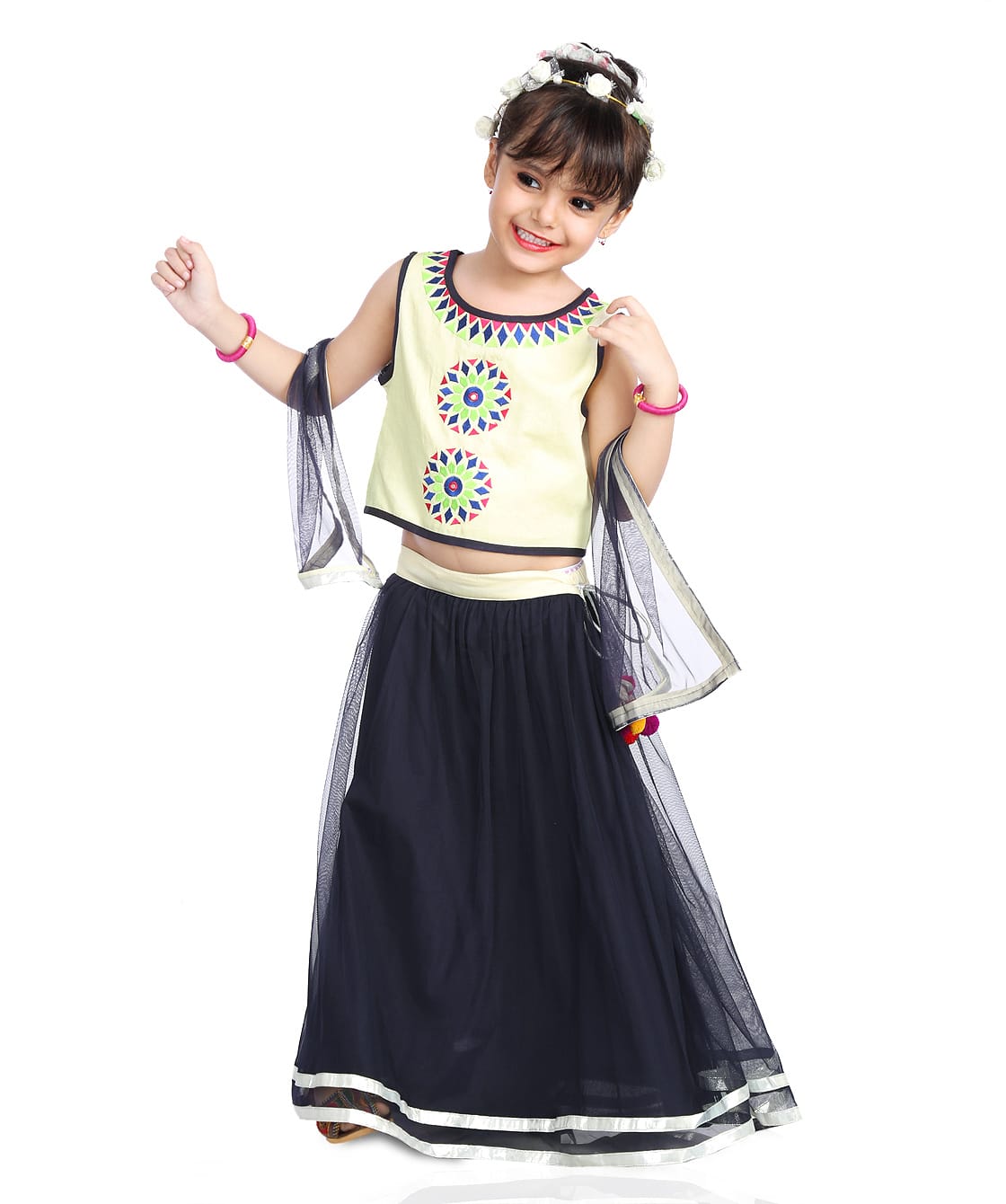 Embroidered top with netted lehenga and netted dupatta Available in sizes 2-9 years