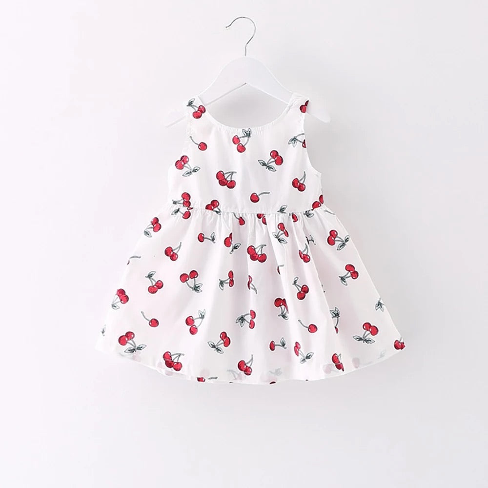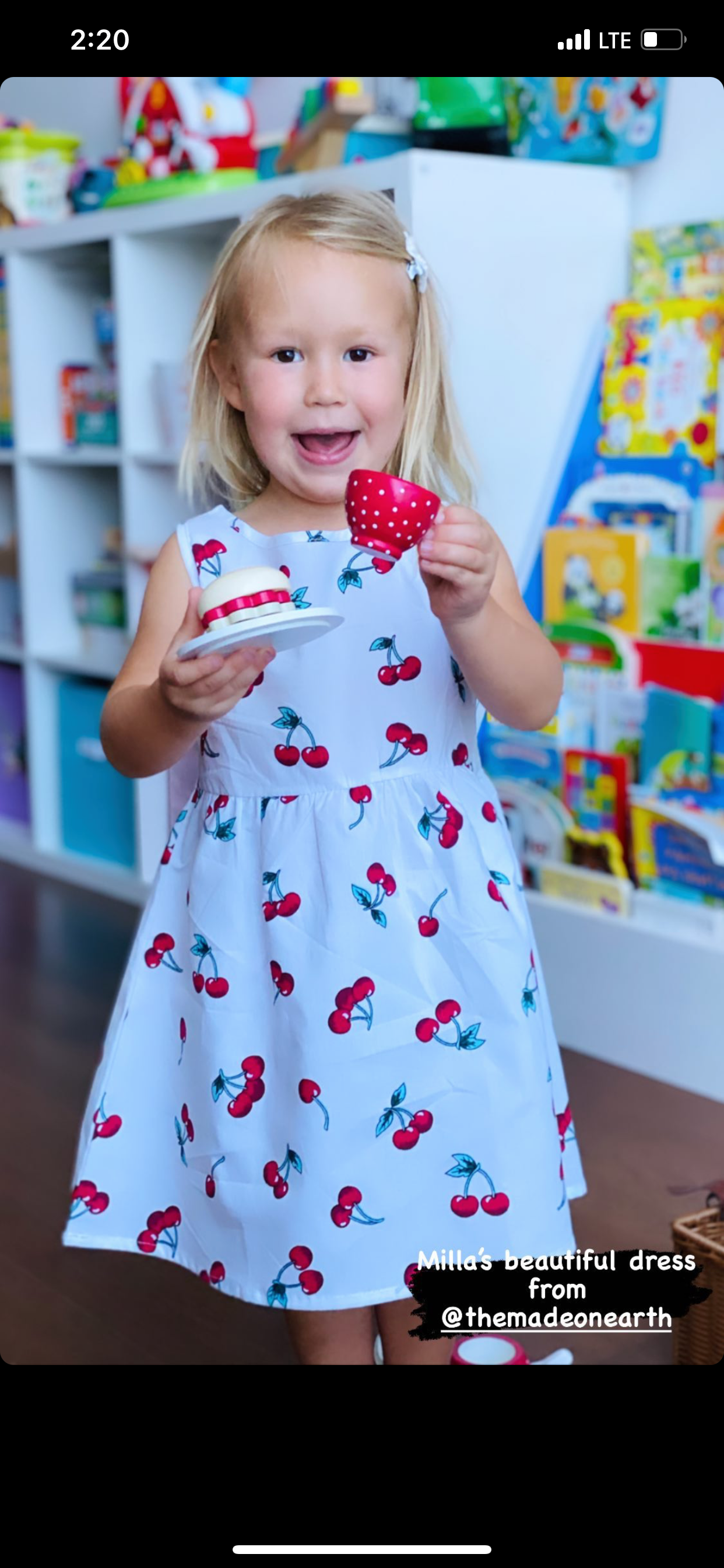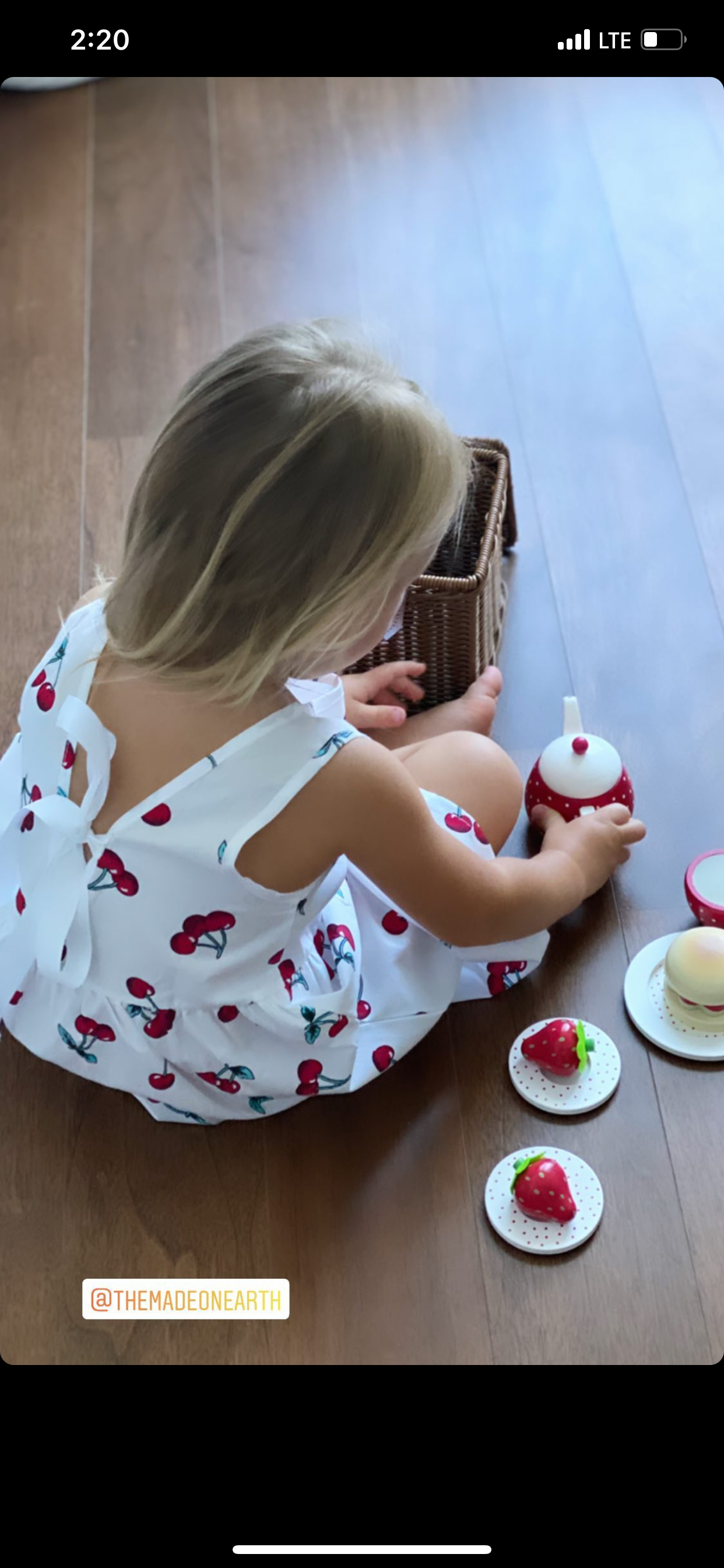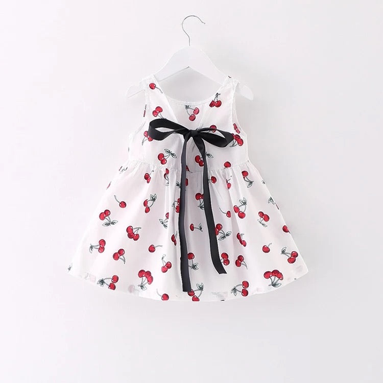 The watercolor pop red cherry with a dash of green leaf print makes the dress delightful.